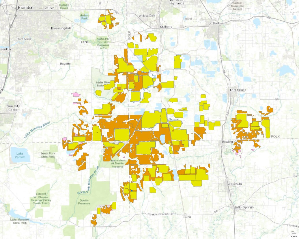 Description: The Mandatory Phosphate Waste Disposal layer contains the conceptual boundaries of the Waste Disposal parcels within all active mandatory phosphate mines in Florida by the year 2020. 'Mandatory Phosphate Mines' does not indicate that the area is required to be mined for phosphate; 'Mandatory' refers to the regulatory status of the land. Land mined for phosphate since July 1, 1975 is 'Mandatory,' and is required by Florida law to be reclaimed (contoured and re-vegetated). Land mined prior to July 1, 1975 was not required to be reclaimed. This layer provides the mine boundary for mines that are subject to the regulatory requirements of Chapter 378, Part III, F.S. and/or Chapter 373, Part IV. F.S. and Chapter 62C-16, F.A.C. Mandatory phosphate mining occurs primarily in the central Florida phosphate mining district in Polk, Hillsborough, Manatee, and Hardee counties and one mine in North Florida in Hamilton County. This layer was designed to provide the Mining and Mitigation Program with a graphical representation of the Mandatory Phosphate boundaries for planning and management purposes. Because this data is a work in progress, it may contain errors such as missing features, outdated features, overlapping features, erroneous status of features, variations in accuracy, or attribute errors. This layer was created and maintained by the Florida Department of Environmental Protection, Program Support.