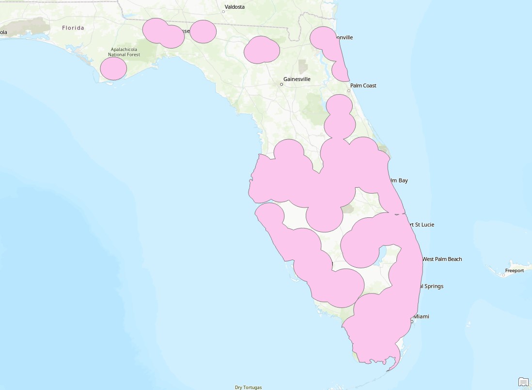 Description: <DIV STYLE="text-align:Left;"><DIV><DIV><P><SPAN>Wood stork core foraging areas for active nesting colonies in Florida, dissolved to minimize polygons. Active includes nested within FL 2010-2019.</SPAN></P></DIV></DIV></DIV>